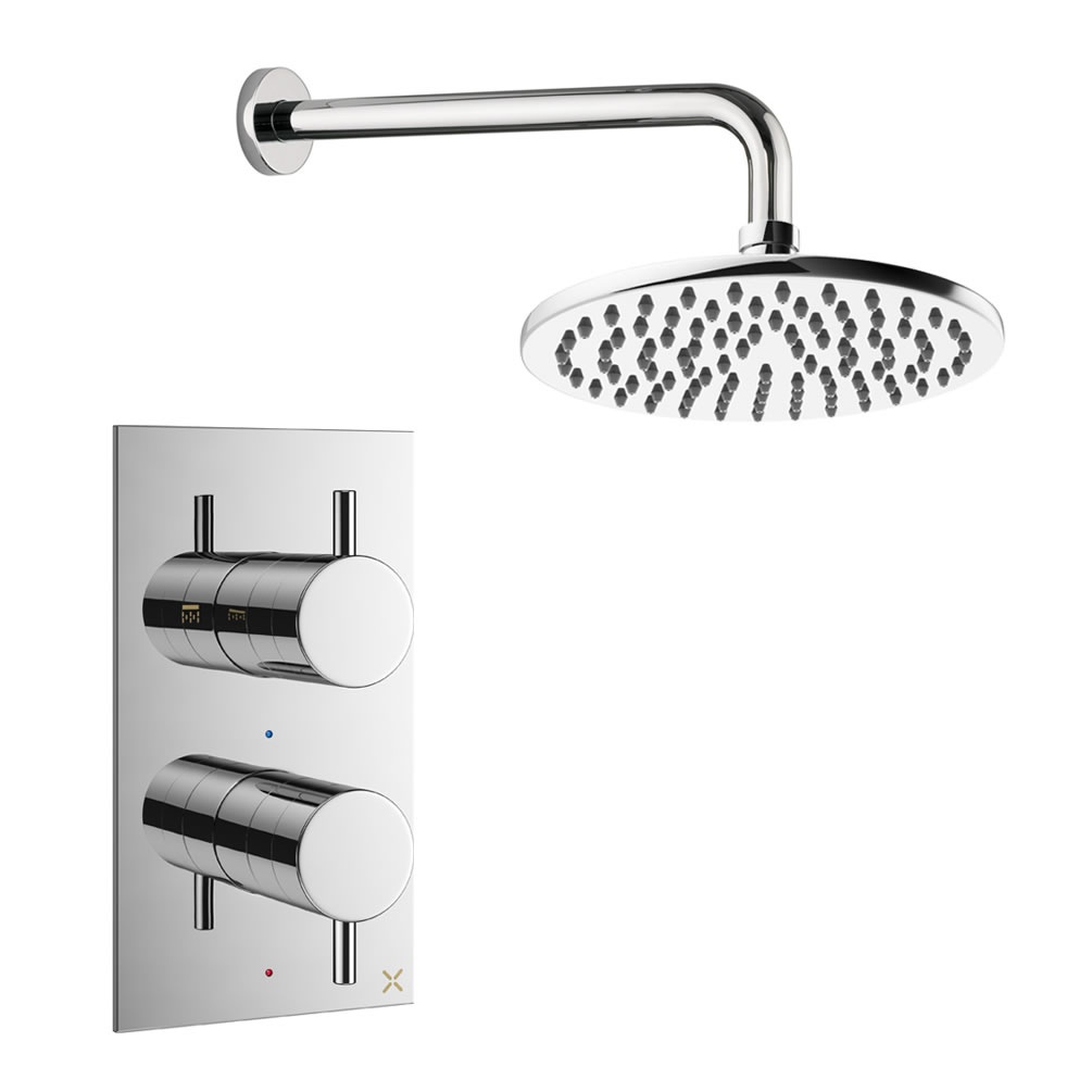 This thermostatic shower system includes a high-quality one-way valve and circular rainfall shower head, complete with a 330mm wall-mounted arm. The shower head is available in both 200mm and 300mm variants, while the valve provides responsive and accurate water flow control. Furthermore, the thermostatic technology guarantees user safety by preventing scalding or freezing surges.