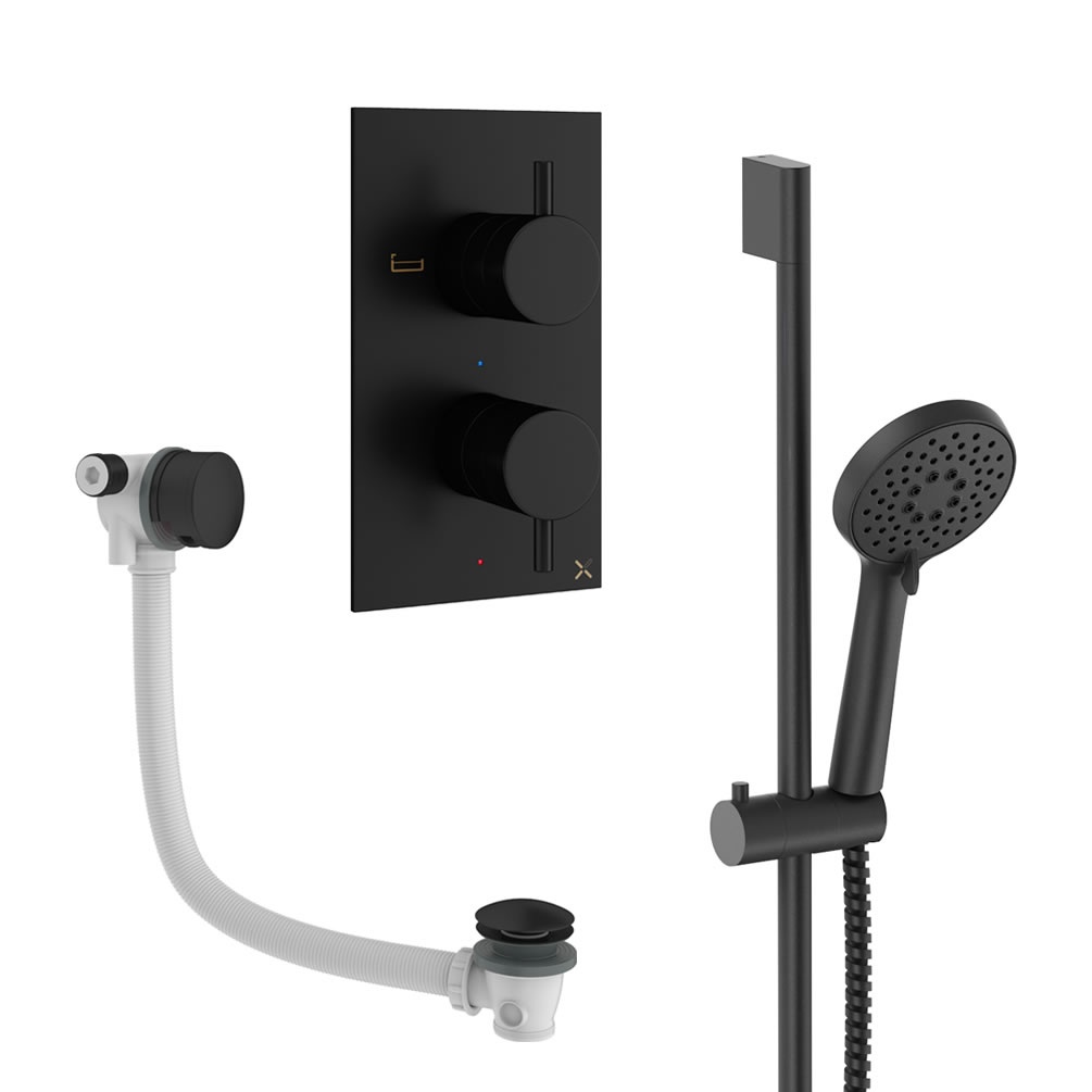 A comprehensive bathing solution, this system features everything you need to fill your bathtub, drain it, and even enjoy a satisfying and invigorating shower. The commanding matt black finish can't help but impress, while the solid brass construction protects some of the finest engineering available in British bathroom hardware.
