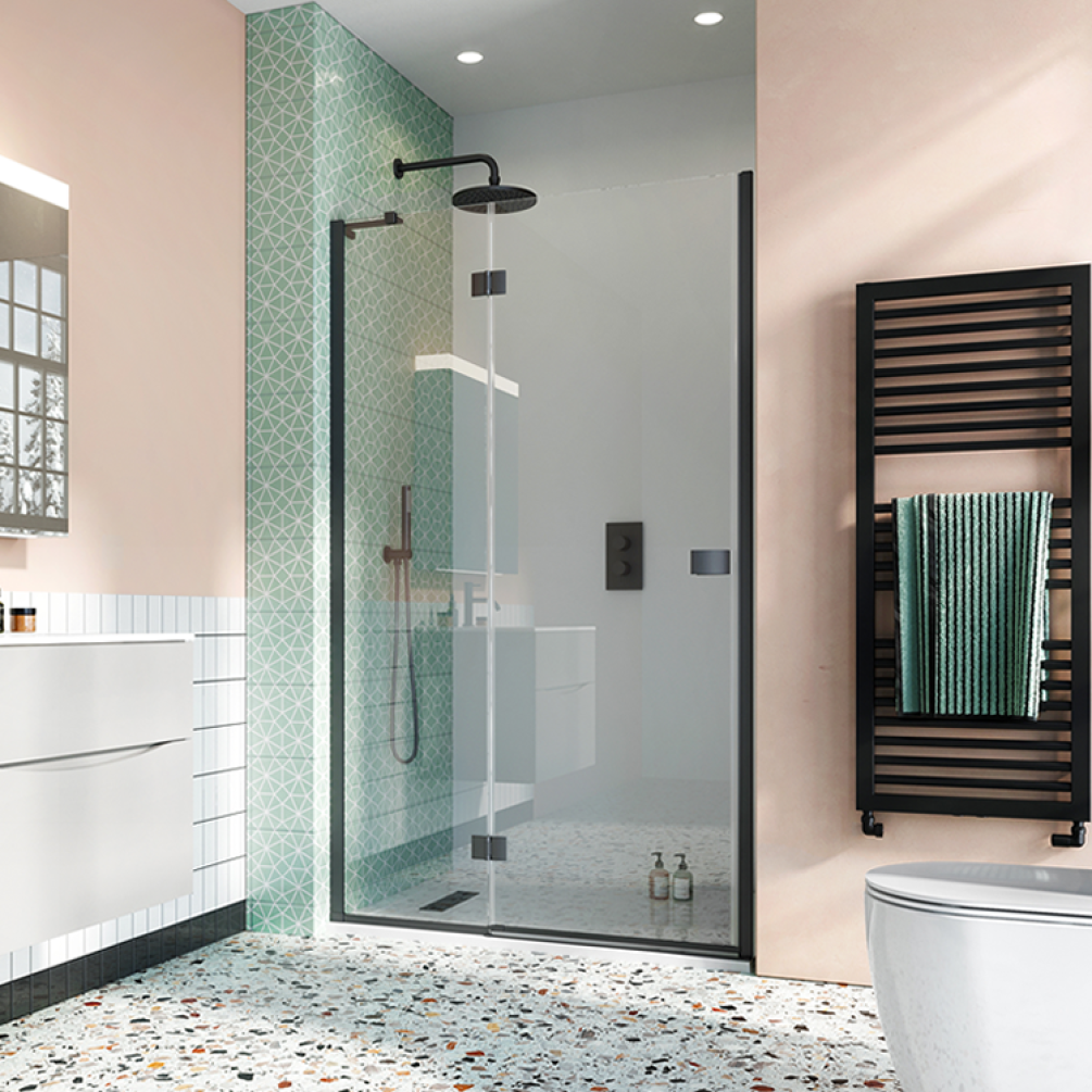 Mixing smart, minimal design with an eye-catching matt black finish, this semi-frameless Crosswater shower door is an enticing proposition indeed.