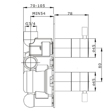- Single outlet shower valve
