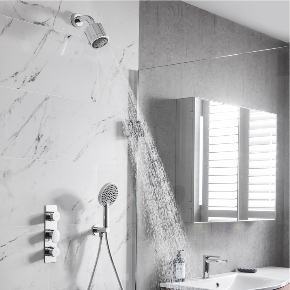 - Including Crosswater Brass portrait trim set, Wall outlet with shower hose and multifunctional handset