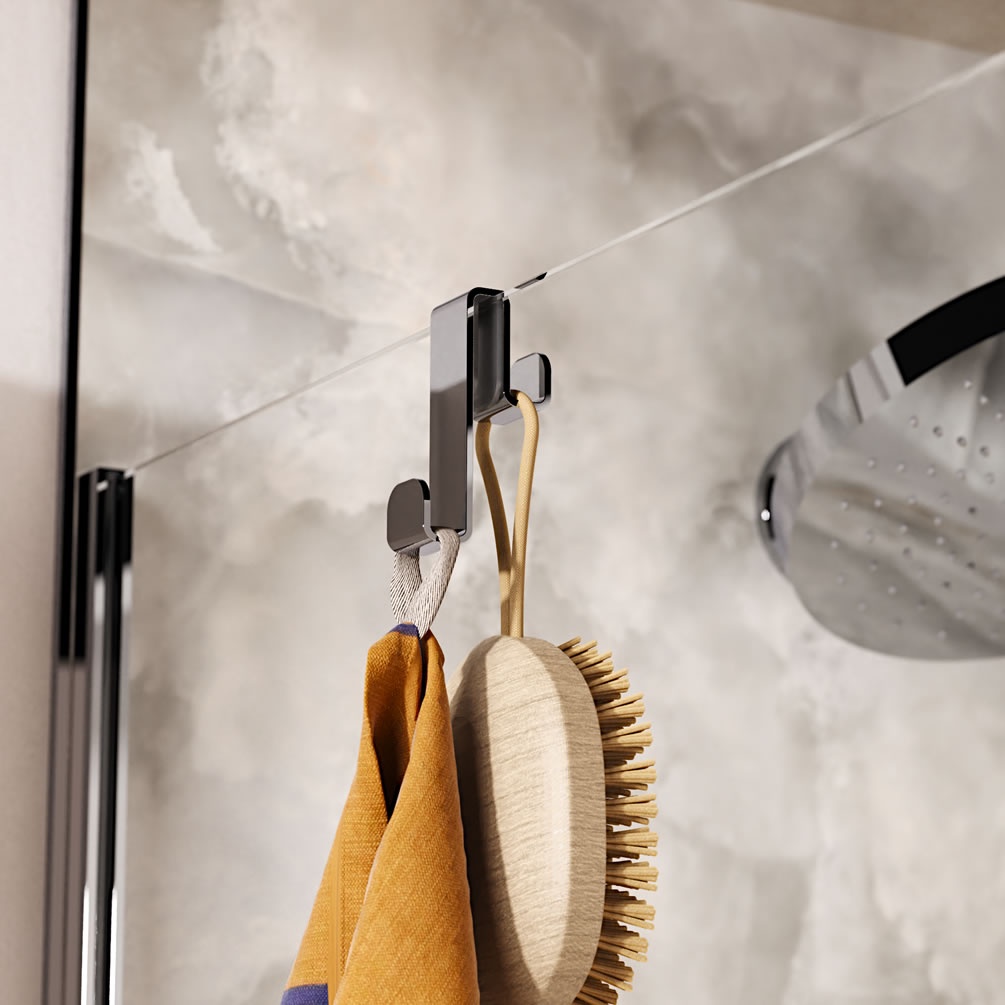 A simple and highly efficient addition to your shower enclosure, this Crosswater hanging hook lets you keep the items you need within easy reach. It's compatible with any 8mm or 10mm shower glass panel, slotting neatly over the top to provide extra hanging space for a towels, shower brushes, bath robes, or indeed anything else you might need to hand. This accessory is constructed from 304 stainless steel with a polished chrome finish, complementing your minimalist bathroom theme.
