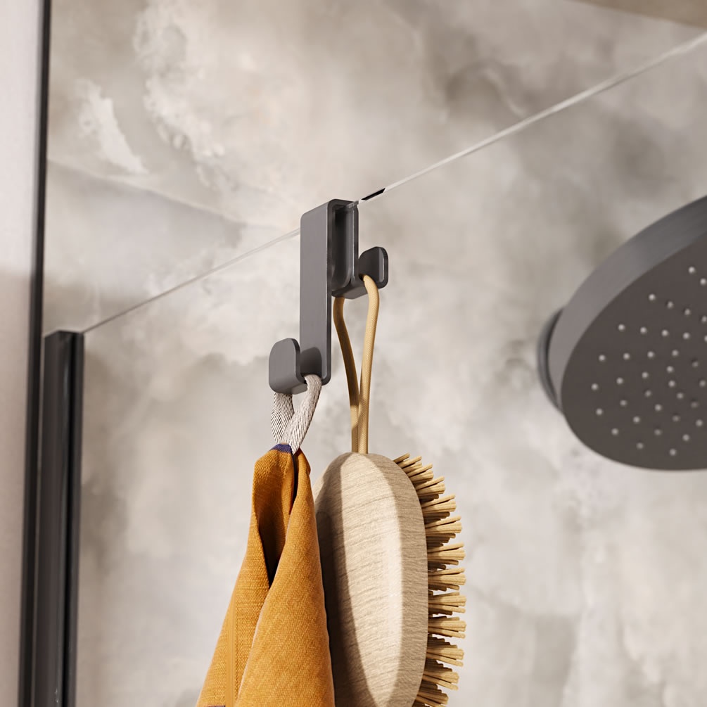 Designed to slot smartly over the top of your shower glass panel, this Crosswater hook provides a handy double hanging storage option. The hook is manufactured from durable 304 stainless steel, with a textured slate finish that complements various contemporary schemes. It's compatible with any 8mm or 10mm shower glass, including side panels and wetroom screens.