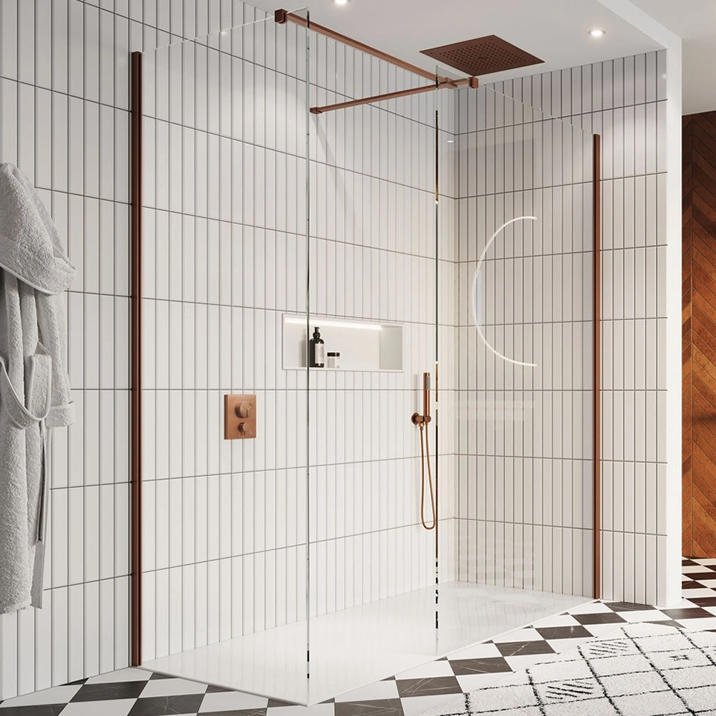 Designed for the luxurious Gallery 10 range, this screen features a 10mm toughened glass build with a ravishing brushed bronze wall profile. The glass is enriched with Crosswater Clear, an exclusive finishing treatment that prevents grime, limescale and soap scum from gaining purchase. This ensures a lasting polished effect, easily maintained with just a quick wipe clean.