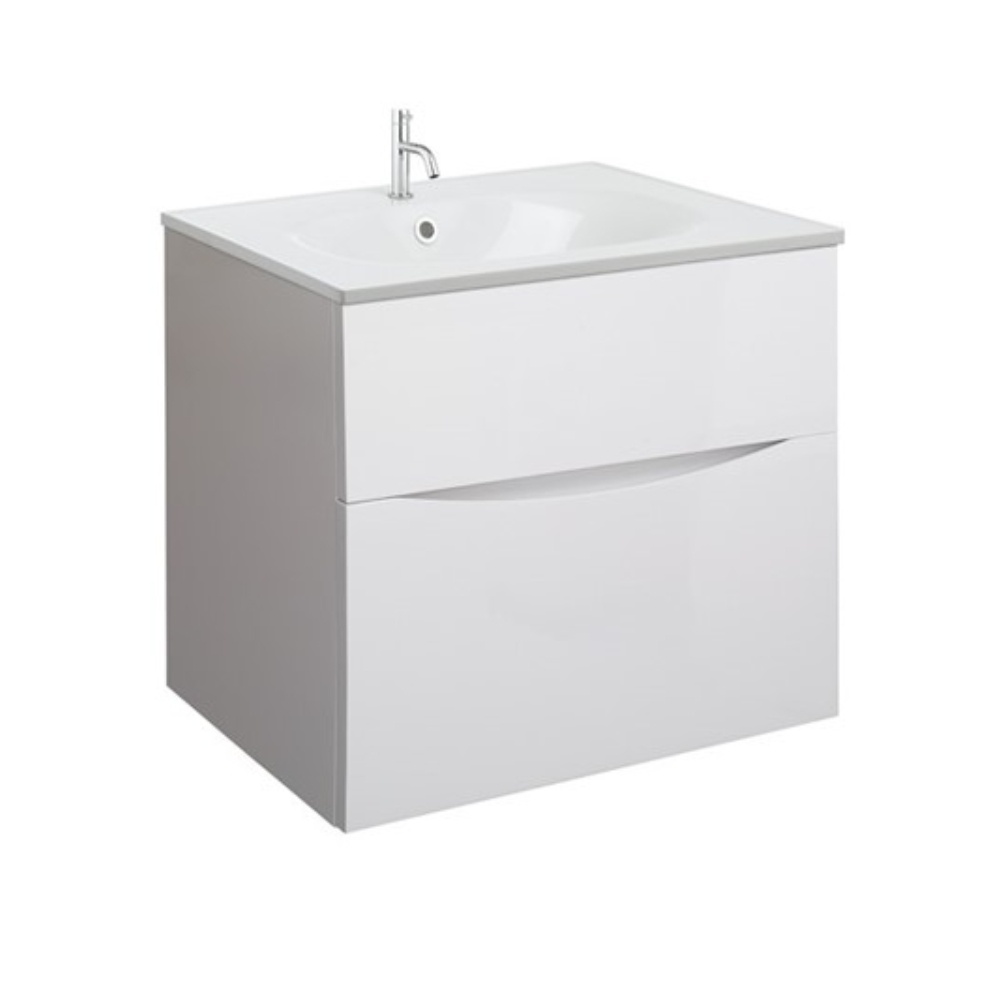 Crosswater Glide II White Gloss 600mm Double Drawer Unit with Basin