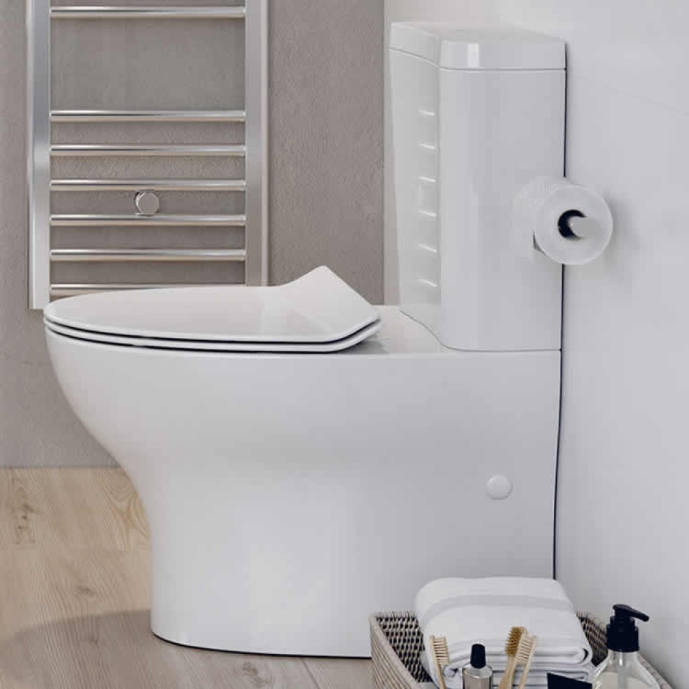 Featuring a ceramic build, this close-coupled toilet comes complete with a dual-flush cistern. A soft-close slimline seat is also included, which can be quickly detached for easy cleaning and maintenance. This D-shaped toilet is capable of functioning with an eco-friendly 3/4.5 litre flush volume, offering a long-term reduction in overall water usage.