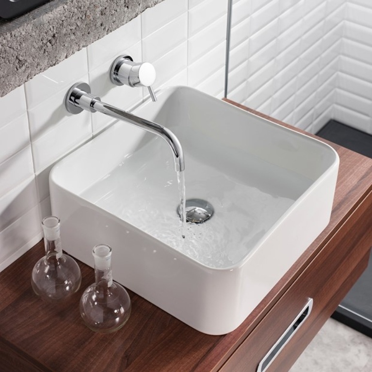 Separate to the spout, the Kai Lever Basin 2 Hole Set includes a slim lever handle, which controls the temperature and flow of the water by turning and lifting it respectively.