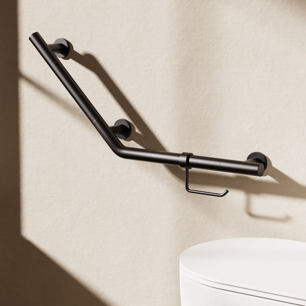 If you're looking to increase the accessibility of your bathroom without ramping up the clutter, this two-in-one grab bar and toilet roll holder is the perfect place to start. A seamlessly integrated accessory, this Crosswater rail features a powerful steel build and robust concealed fixings. It's ideal for those who require extra support when lowering or raising themselves, preserving independence without upsetting the visual flow of your bathroom. The toilet roll holder is removable if you wish to locate the grab bar elsewhere, while the matt black finish maintains a confident, contemporary vibe.