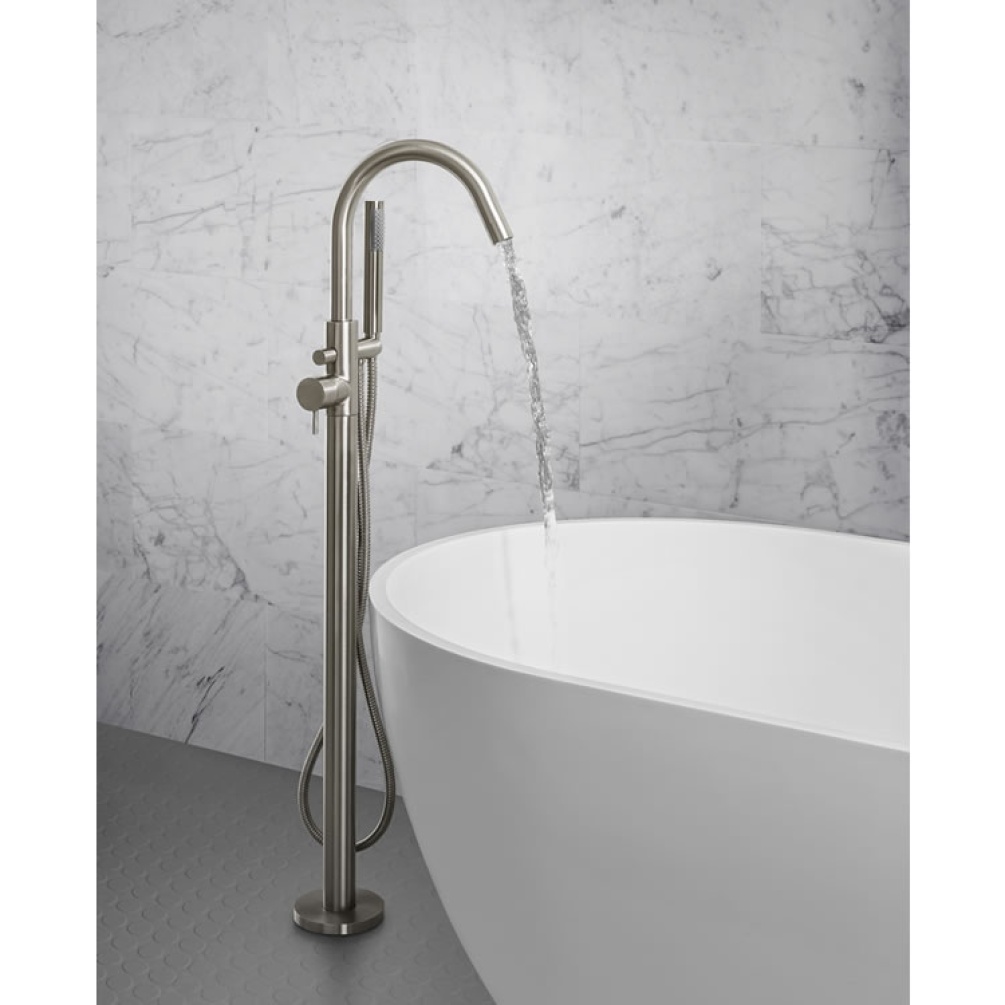 Featuring a unique Brushed Stainless Steel finish, this Crosswater Floorstanding Bath Shower Mixer from the Mike Pro range will compliment any modern freestanding bath.