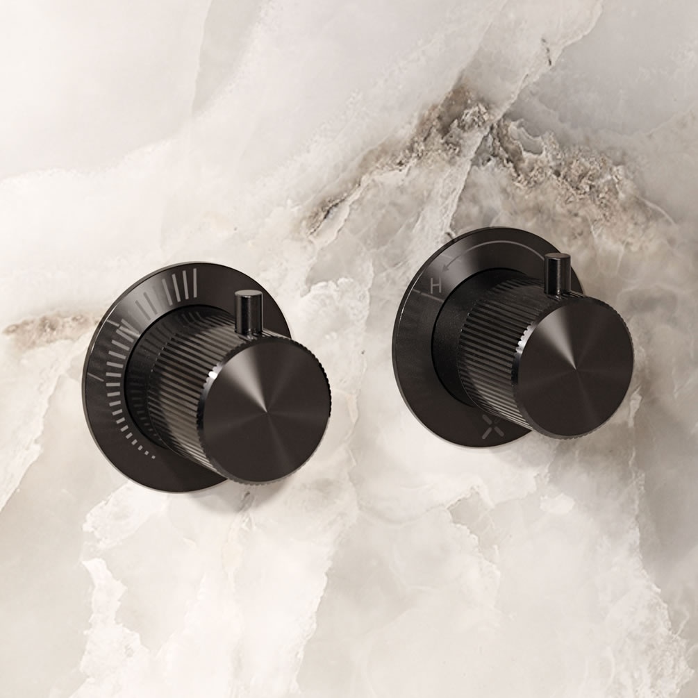 This concealed valve eschews the traditional backplate, leaving only the two control dials visible on your bathroom wall. These dials are forged from 316 stainless steel, providing incredible durability and plenty of sustainable value. They're finished in a beautiful stainless slate, bringing a sense of raw, ultra-contemporary glamour into your bathing space.