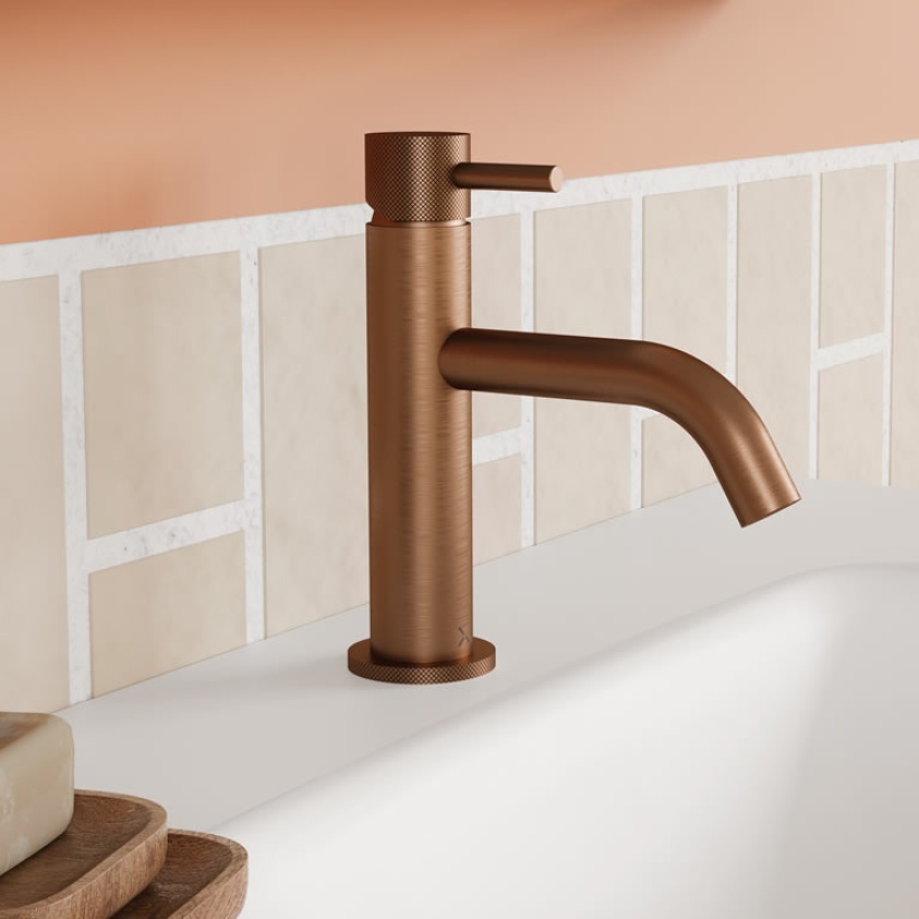 Bring on trend design to your new bathroom with the bold and beautiful MPRO basin monobloc from Crosswater, featuring the latest brushed bronze finish and coupled with designer knurled detail, that is sure to create a statement within your bathroom. The rounded body is coupled with a lever handle, which is both practical and aesthetically pleasing.