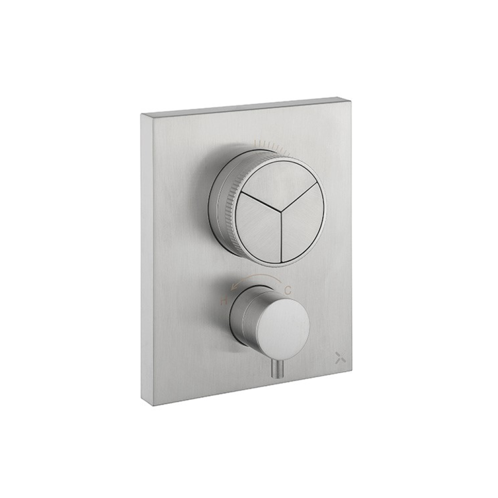 Crosswater MPRO Brushed Stainless Steel Triple Outlet Crossbox Push Shower Valve.