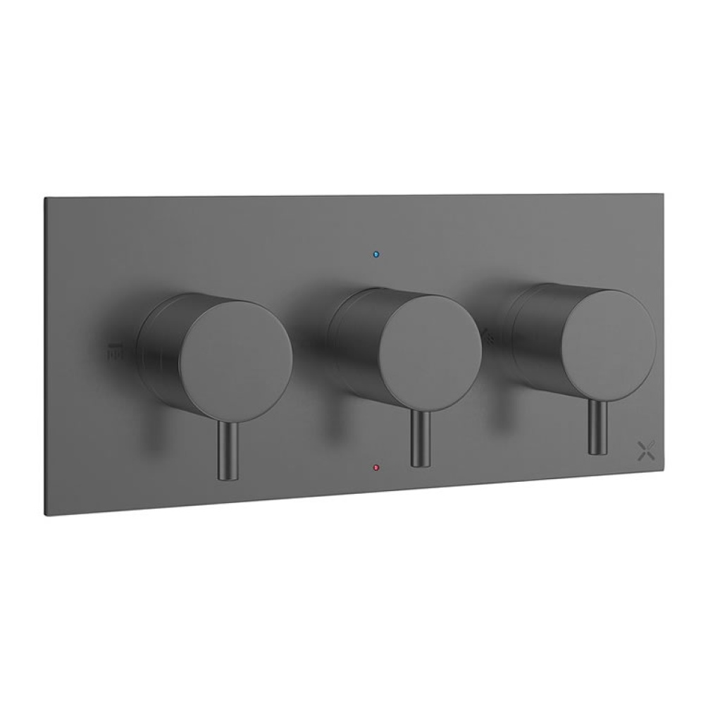 Featuring the latest in design and manufacturing, the Crosswater MPRO landscape shower valve makes a stunning choice for your shower space, the bold slate finish is sure to create the 'wow' factor with your bathroom interiors and the 3 controls are practical and easy to use. This contemporary shower valve will operate two shower outlets for a tailored showering experience, coordinate with the matching slate shower heads and handset for a coordinated look throughout.