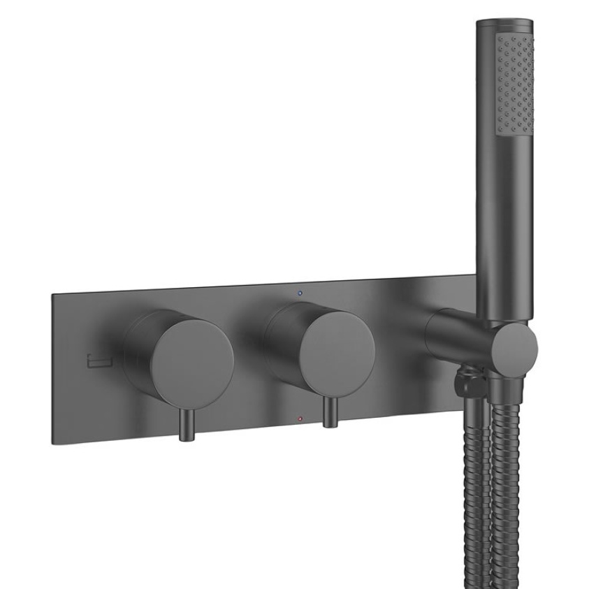 The new addition to the Crosswater MPRO range is the wall mounted bath valve, featuring the latest, on trend Slate finish that is sure to add a bold statement to your bathroom design. The two outlet design will allow you to divert between the integrated shower handset and an additional accessory, such as a bath overflow filler, team with the matching MPRO Slate finish for a coordinated look throughout.