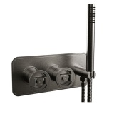 Add style and performance to all industrial styled bathrooms, the Union shower handset features a distinctive brushed black chrome finish with knurled detail.