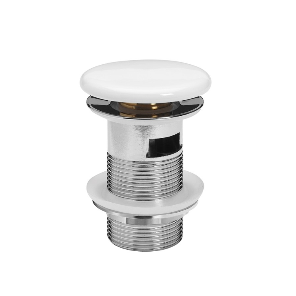 Topped with gloss white, the finish of this click-clack basin waste allows it to blend in with your ceramic basin when it is closed, creating a seamless bowl.