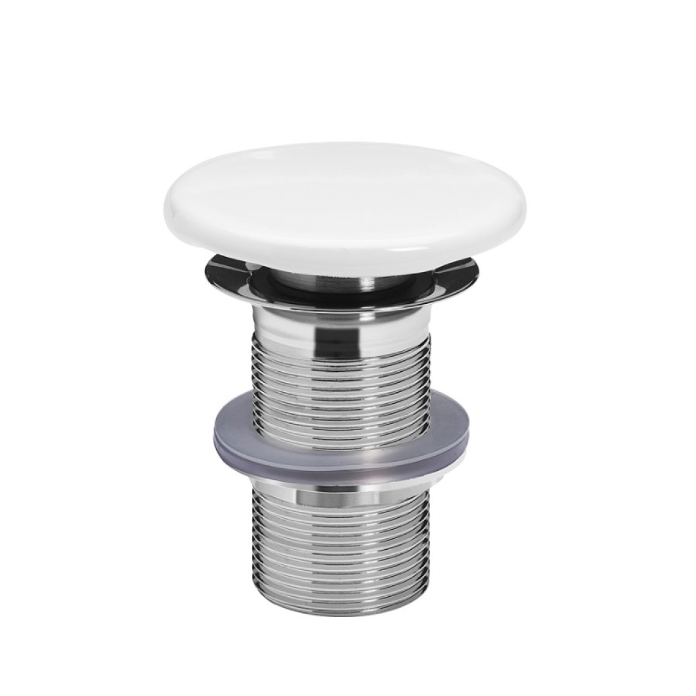 Topped with gloss white, the finish of this click-clack basin waste allows it to blend in with your ceramic basin when it is closed, creating a seamless bowl.