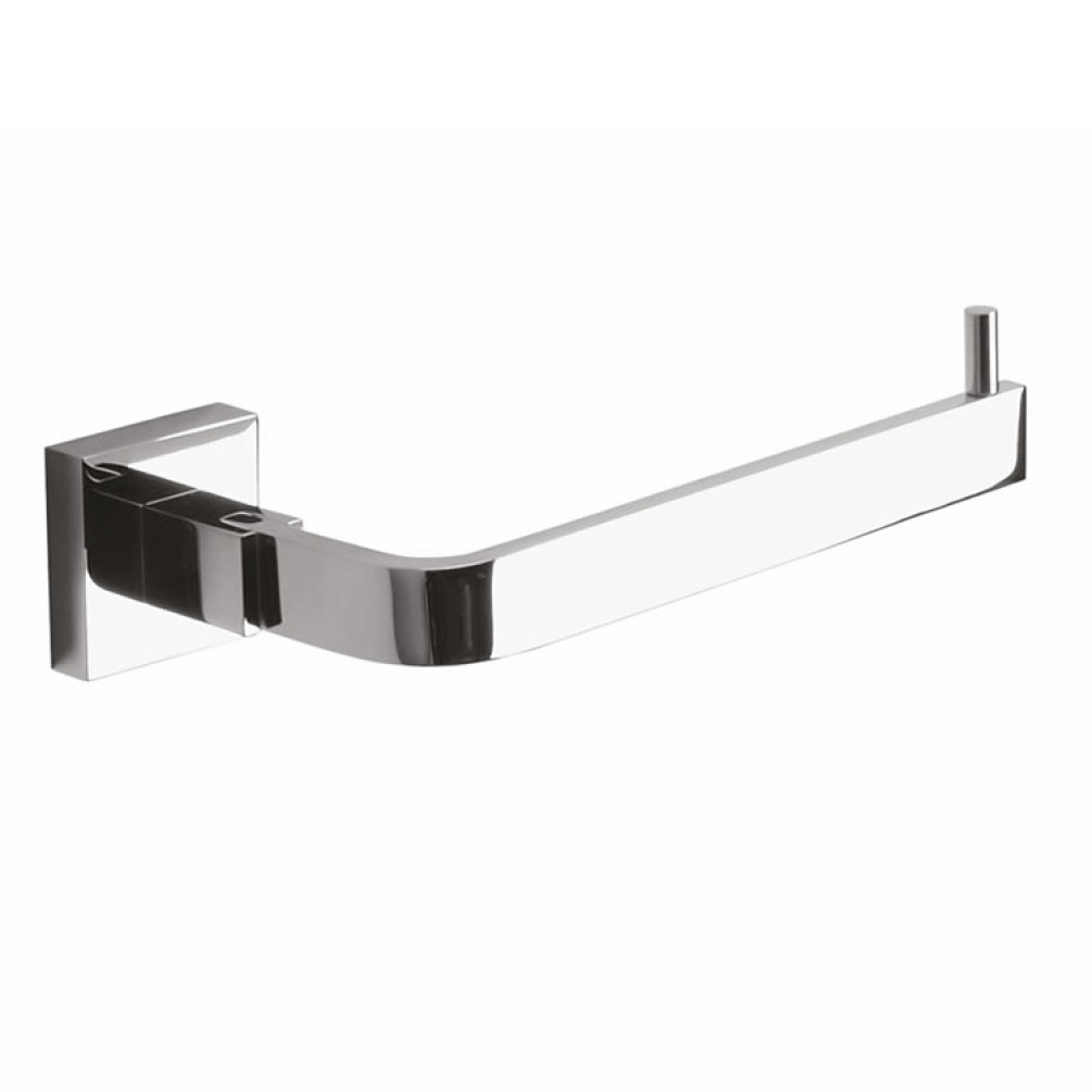 It features an open, squared bar to hang your toilet paper on and the wall-mounted design, attached by a square wall-fixing, ensures that you can place it at a height and location within reach of all aged-users of the bathroom.
