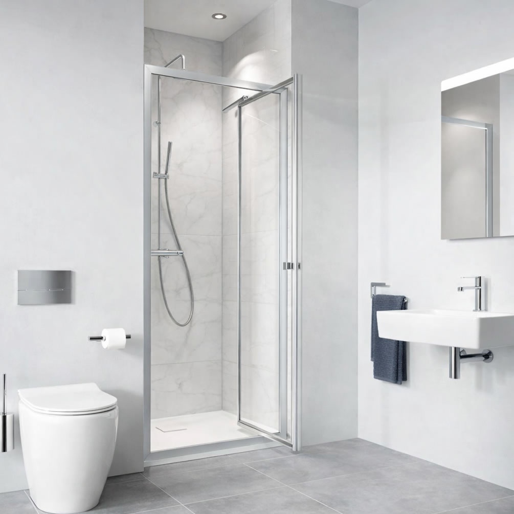 This door comprises a 6mm toughened glass panel, set within a softly gleaming chrome frame and profile. The frame's anodised finish ensures longevity, while the glass screen's protective coating stamps out limescale growth and stubborn water staining. Regarding installation and situation, this door uses a simplified click and lock system to streamline the fitting process. Furthermore, it functions well in recesses or corners, with optional side panels enabling corner configurations. Additionally, the door is viable on both shower tray and tiled wetroom bases.