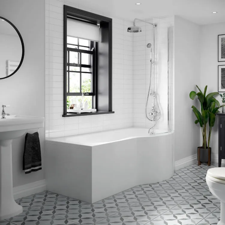 Much like a P-shaped bath, it would be forgiven if you looked at these and thought they were the same. However, a b-shaped bath tends to feature a bulkier shower end than a P-shaped bath. Some b-shaped baths from some brands also have a curved, thicker bathing end making it look more like a capital ‘B’.