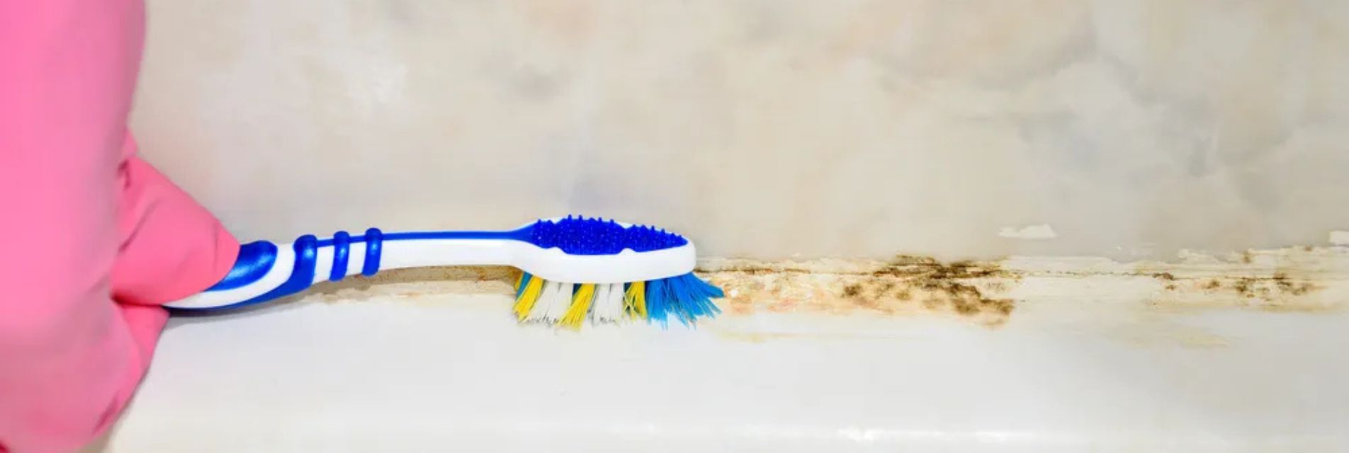 Porous grout is one of the trickiest areas to tackle, as mould embeds itself into the surface rather than sitting on top of it. Work in small sections and use a stiff-bristled toothbrush to really work your chosen cleaner into the grout lines.