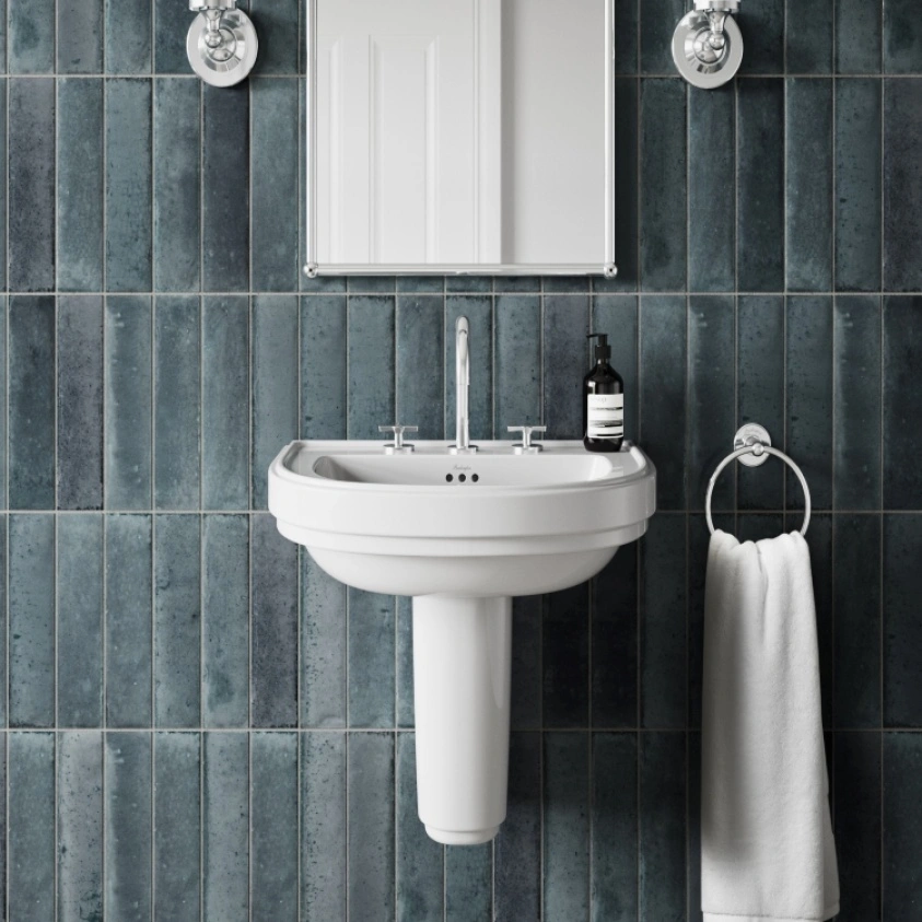Again, this can vary depending on your bathroom’s size and your own personal tastes. Broadly speaking, semi pedestal basins are usually installed at a height of between 600-800mm, or about 23-32 inches from floor level. However, they can be fitted at whatever height is most suitable for their intended users. This is something to take into consideration, especially when working with spaces such as disabled bathrooms or children’s bathrooms.