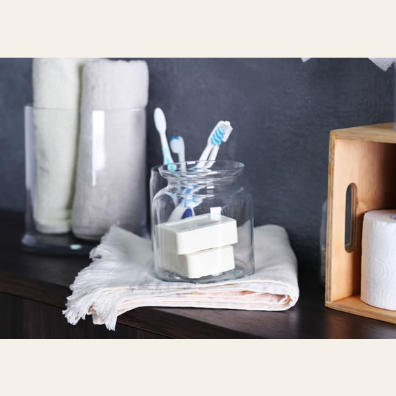 Available from many high-street stores and homeware retailers, mason jars can be used to store toothbrushes, soap, cotton buds and all manner of bathroom essentials, giving your bathroom a rustic feel. If your bathroom has a colour theme, try painting your jars with the colour of your choice for a distressed, vintage-style effect.