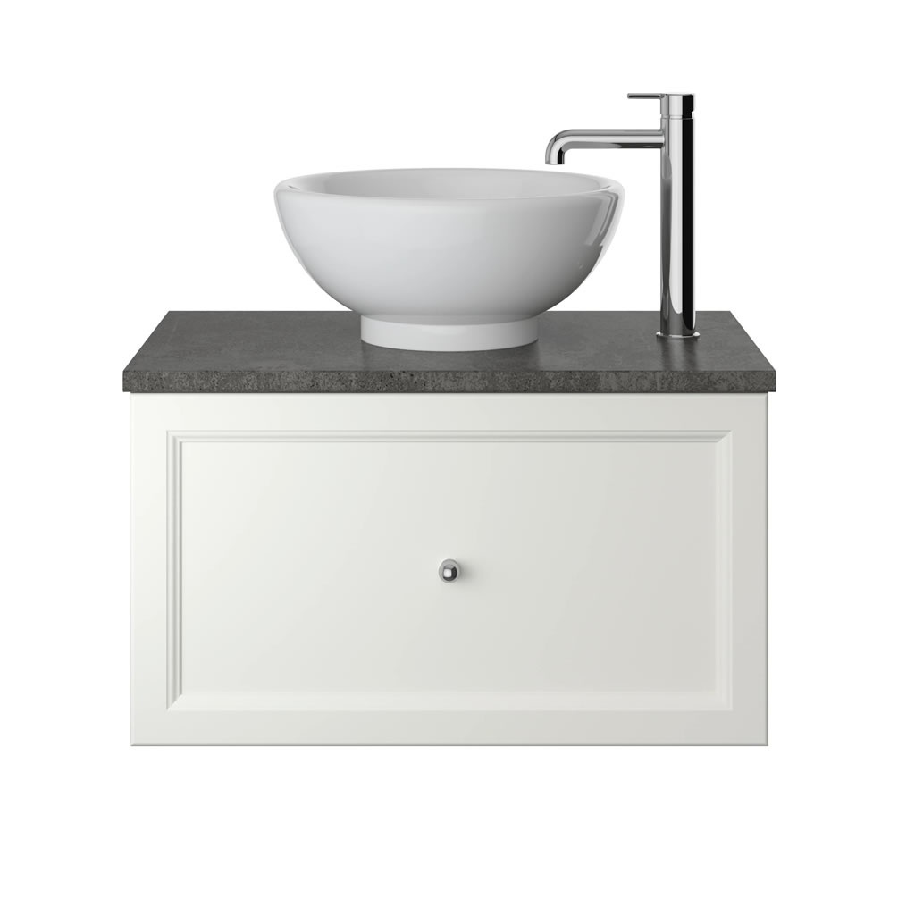 The Caversham wall hung vanity unit from Heritage Bathrooms makes a beautiful addition to all traditional bathrooms, featuring a single soft closing drawer and a beautiful muted Chantilly finish, well suited for a range of bathroom interiors.