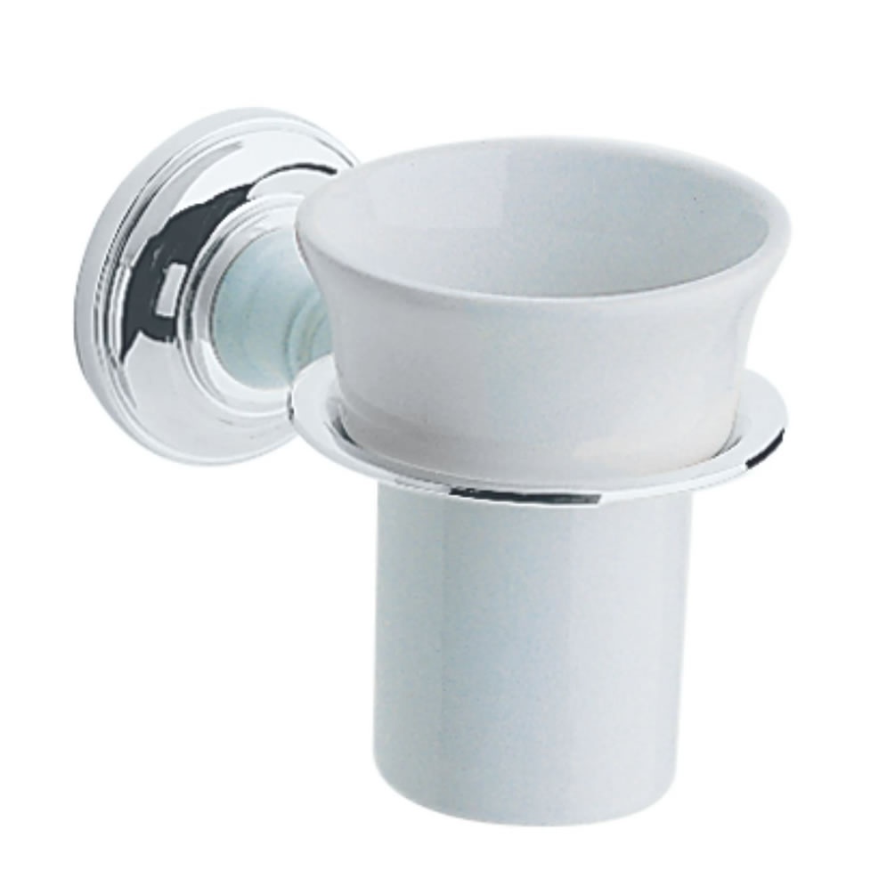This simple, stylish chrome tumbler and holder will add the perfect finishing touch to your bathroom.