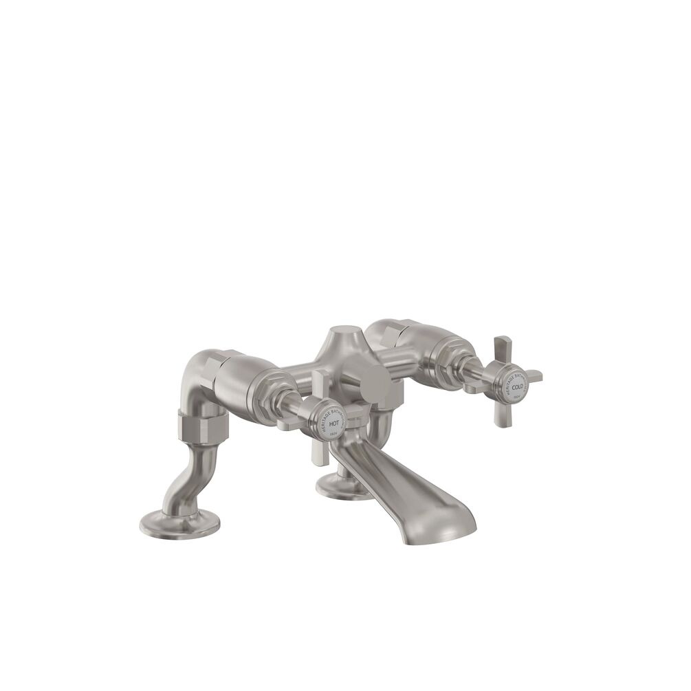 Elevate your bathroom's aesthetic with the Heritage Dawlish Brushed Nickel bath filler, a beautiful bath tap that seamlessly combines modern functionality with timeless design.