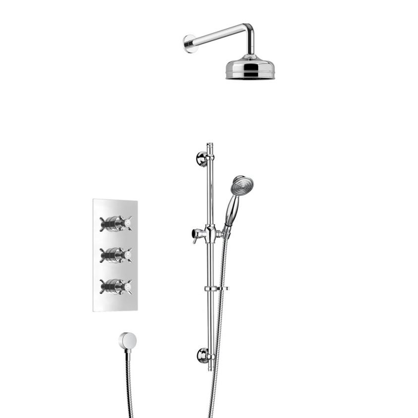 Heritage Dawlish Recessed Shower With Premium Fixed Head and Flexible Riser Kit Chrome Finish