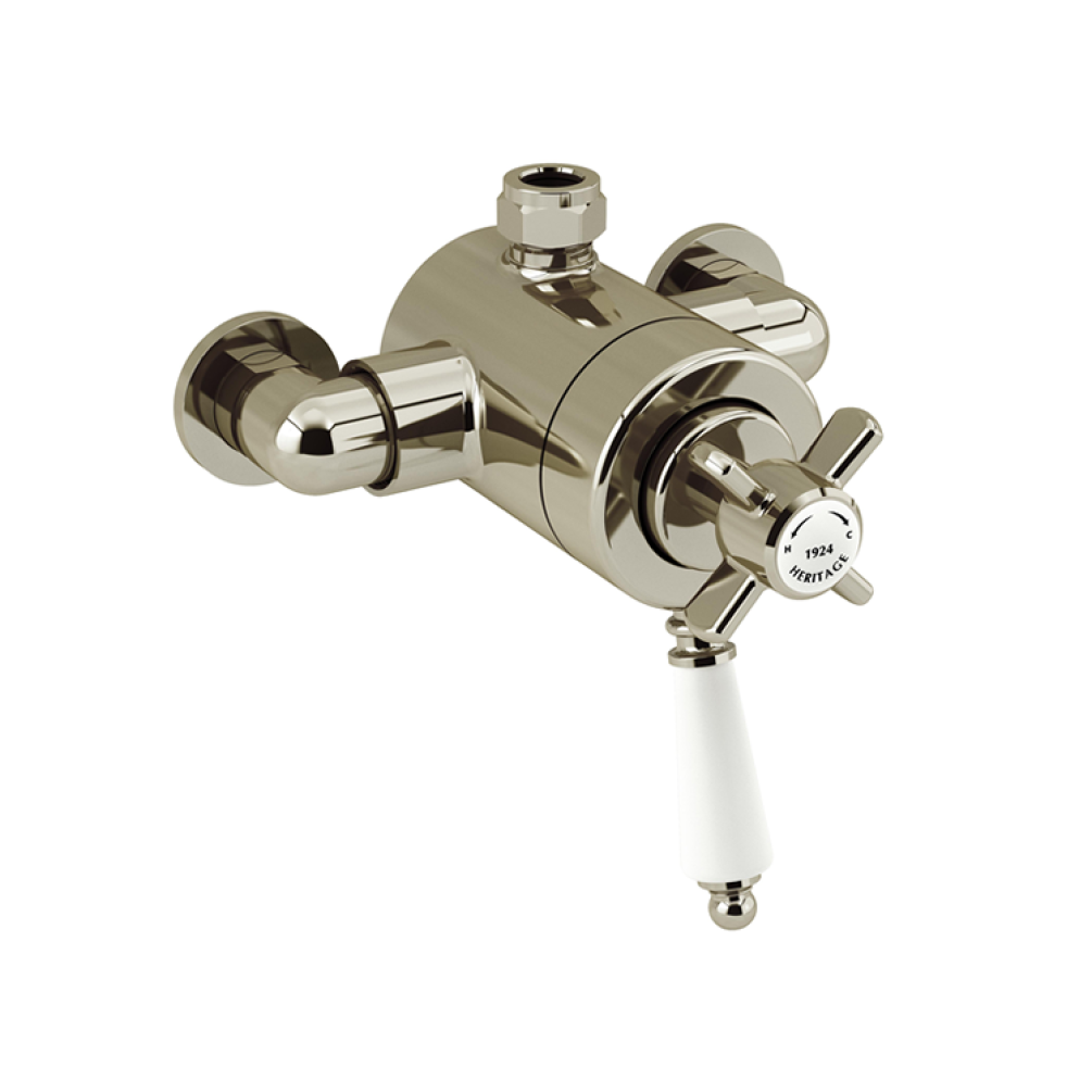 This exposed shower valve acts as a diverter between a shower head and handset, featuring a stylish Vintage Gold finish with simple controls that would suit any traditional bathroom scheme.