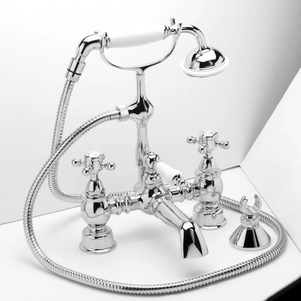This deck mounted bath shower mixer has a classic style and a chrome finish that will make a statement in any traditional bathroom.