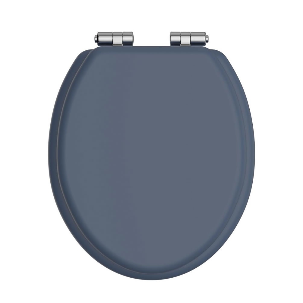This beautifully crafted toilet seat features a rich, blue hue reminiscent of the ocean, bringing a serene and calming atmosphere to your space. The soft-close mechanism ensures a gentle and quiet closure, eliminating the loud slamming noise often associated with traditional toilet seats. Made from high quality materials, this seat is designed for durability and comfort, providing a perfect fit for the Heritage toilets while enhancing the overall aesthetic of your bathroom. Soft closing hinges are available in Chrome, Vintage Gold, Brushed Nickel, Brushed Brass and Matt Black to match your chosen bathroom finish.