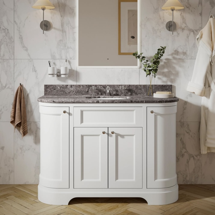 Add traditional style to your bathroom with the timeless and elegant Wilton floorstanding vanity unit from Heritage Bathrooms, featuring a beautiful Chantilly finish that will suit a range of period styled interiors.