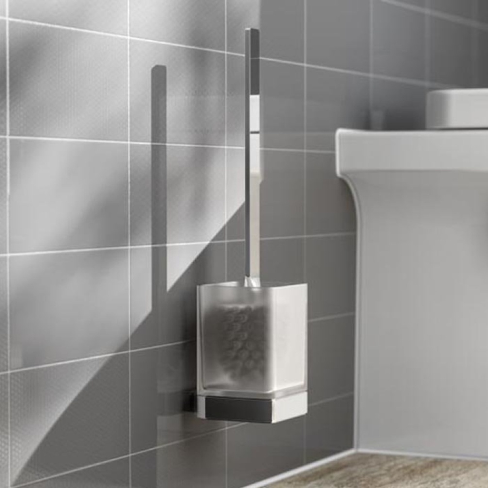 Measuring 90mm in width and 400mm in height, the head of this sleek toilet brush sits inside its frosted glass holder, which can be removed from its wall bracket such that it can be cleaned like any other piece of glassware. The brush head, which sports the same the chrome or matt black finish as its handle, can similarly be removed for cleaning and even replaced, increasing the longevity of the product.
