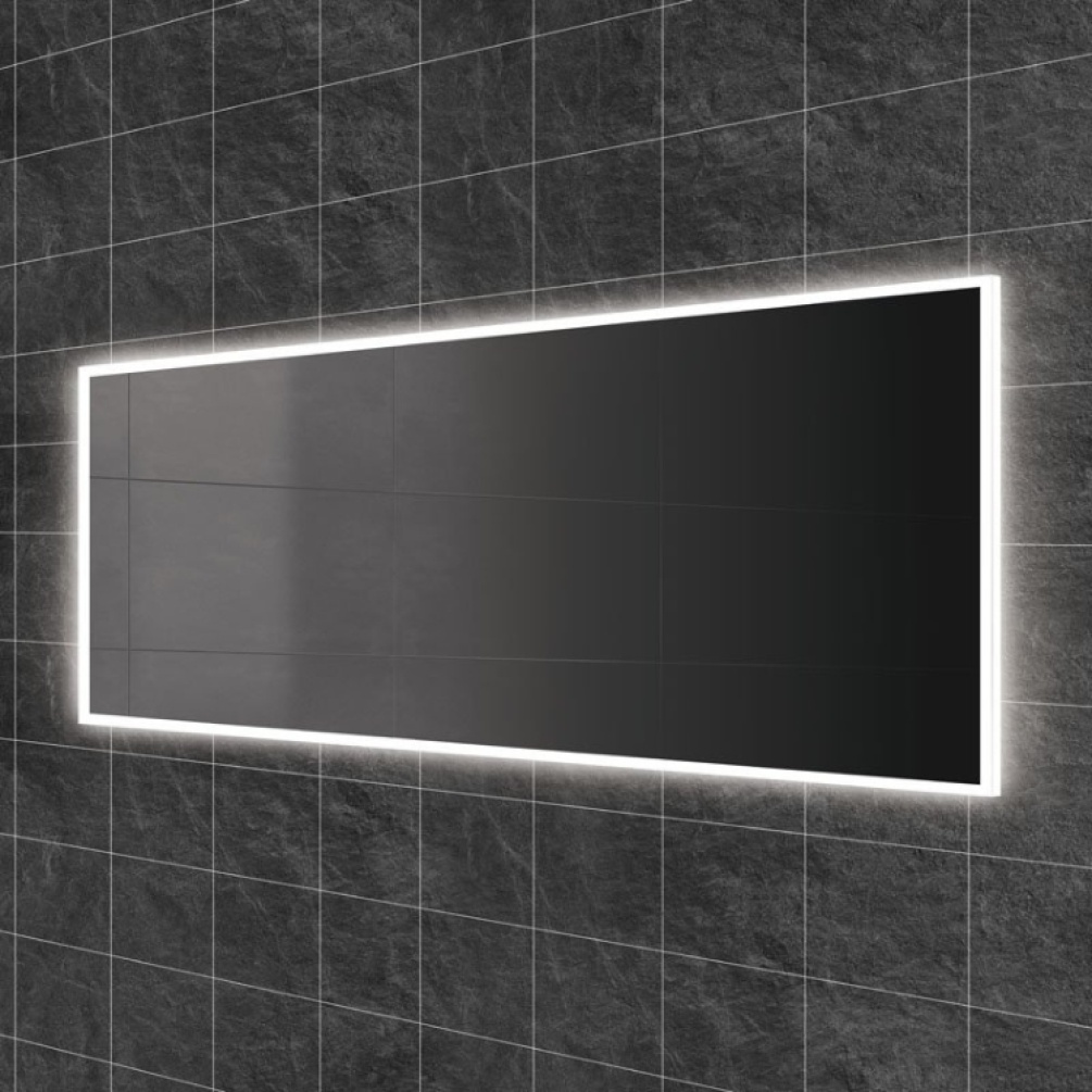 Measuring 1400mm in width and 600mm in height, the sleek surface of this rectangular mirror is enclosed within its frame of colour changing lights, which are controlled via the concealed infrared sensor switch located at its base.
