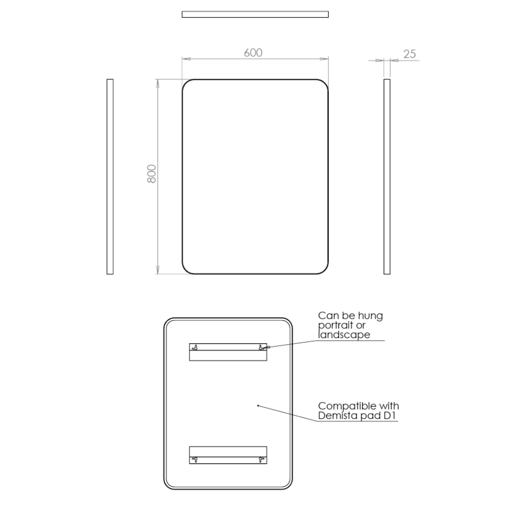 With dimensions of 800mm (H) x 600mm (W) and an ultra-slim profile of 25mm, this wall-mounted mirror is ideally sized for modern living, occupying minimal space while remaining discreet within its environment.