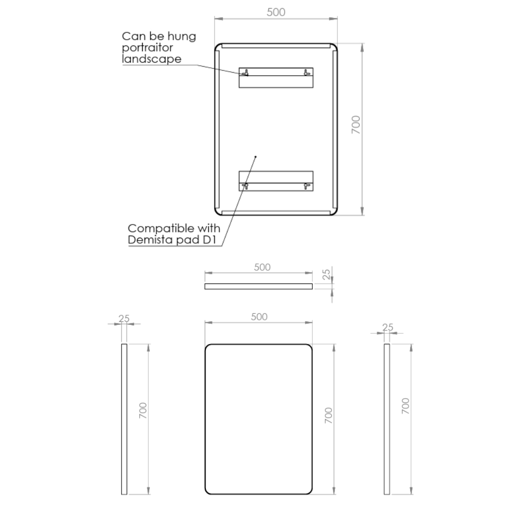 Measuring 800mm (H) x 600mm (W) with a sleek 25mm depth, this mirror securely hangs from the wall, providing ample reflection that's perfect for single vanities, basin spaces, and medium to large bathrooms.