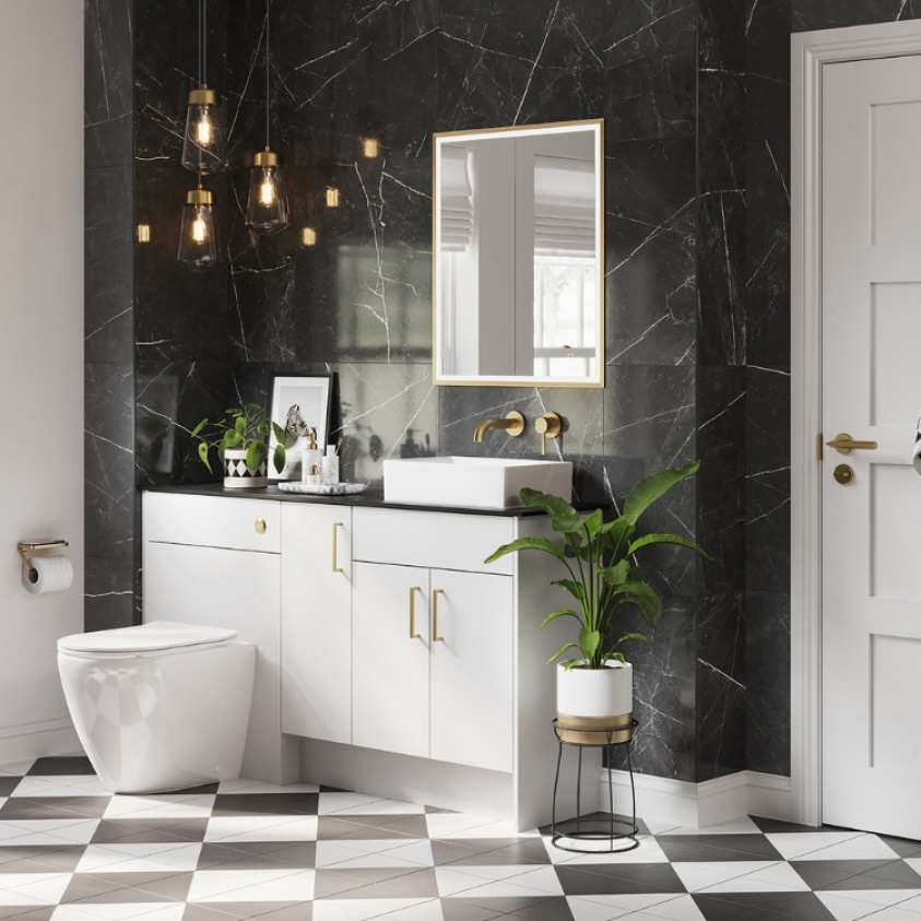 Around the edge of this illuminated mirror cabinet, which measures 630mm in width and 730mm in height, is an aluminium frame, which you can upgrade to either matt black or brushed brass to complement any of your existing fixtures features sporting the same finish. Running alongside your choice of trim are strips of colour changing LEDs, which are operated via the touch sensor switch in the bottom right corner of the right hand mirror door.