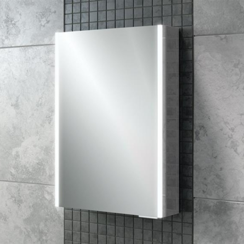 Measuring 505mm in width and 700mm in height, the door of this illuminated mirror cabinet features inward and outward facing mirrored surfaces, allowing you to check your reflection whether the cabinet is open or closed. Lining either side of the cabinet are its bold strips of colour changing LEDs, which are controlled via the infrared sensor switch located at its base.