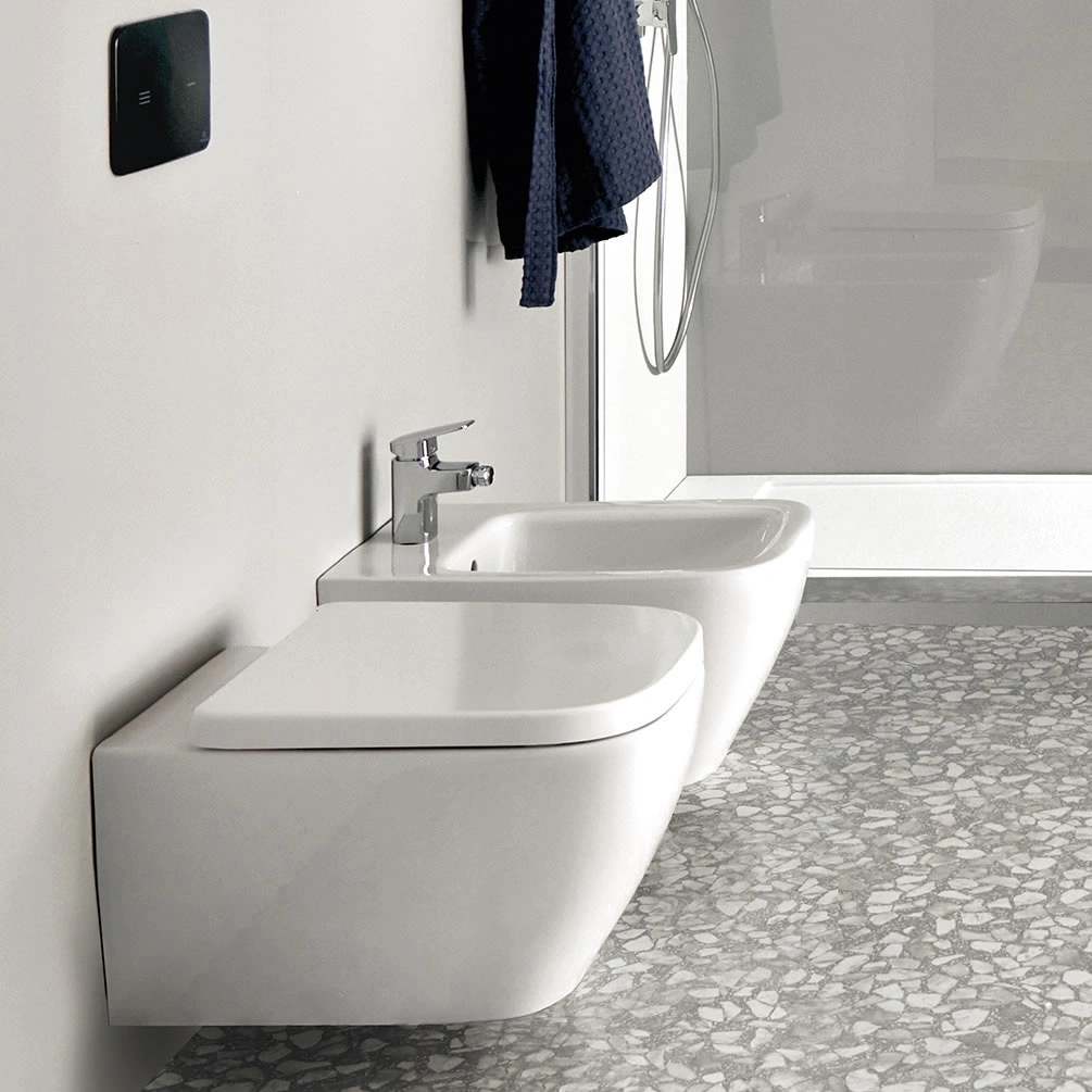 Part of the space-saving i.life S collection, this wall-hung toilet is the perfect option for smaller contemporary bathrooms.