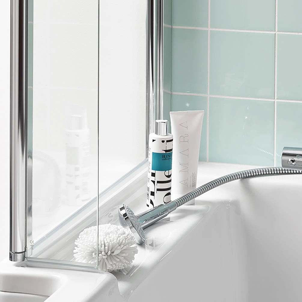 For added convenience, this shower bath comes supplied with its own tailored shower screen. Crafted from 5mm toughened glass, the screen also features a hinged end panel and a built-in towel rail.