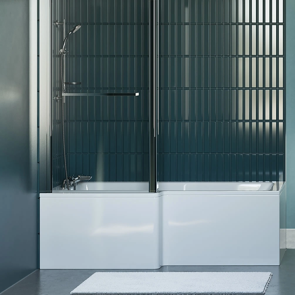 Designed for practicality and streamlined beauty, this L-shaped shower bath is a smart addition to any modern bathroom interior.