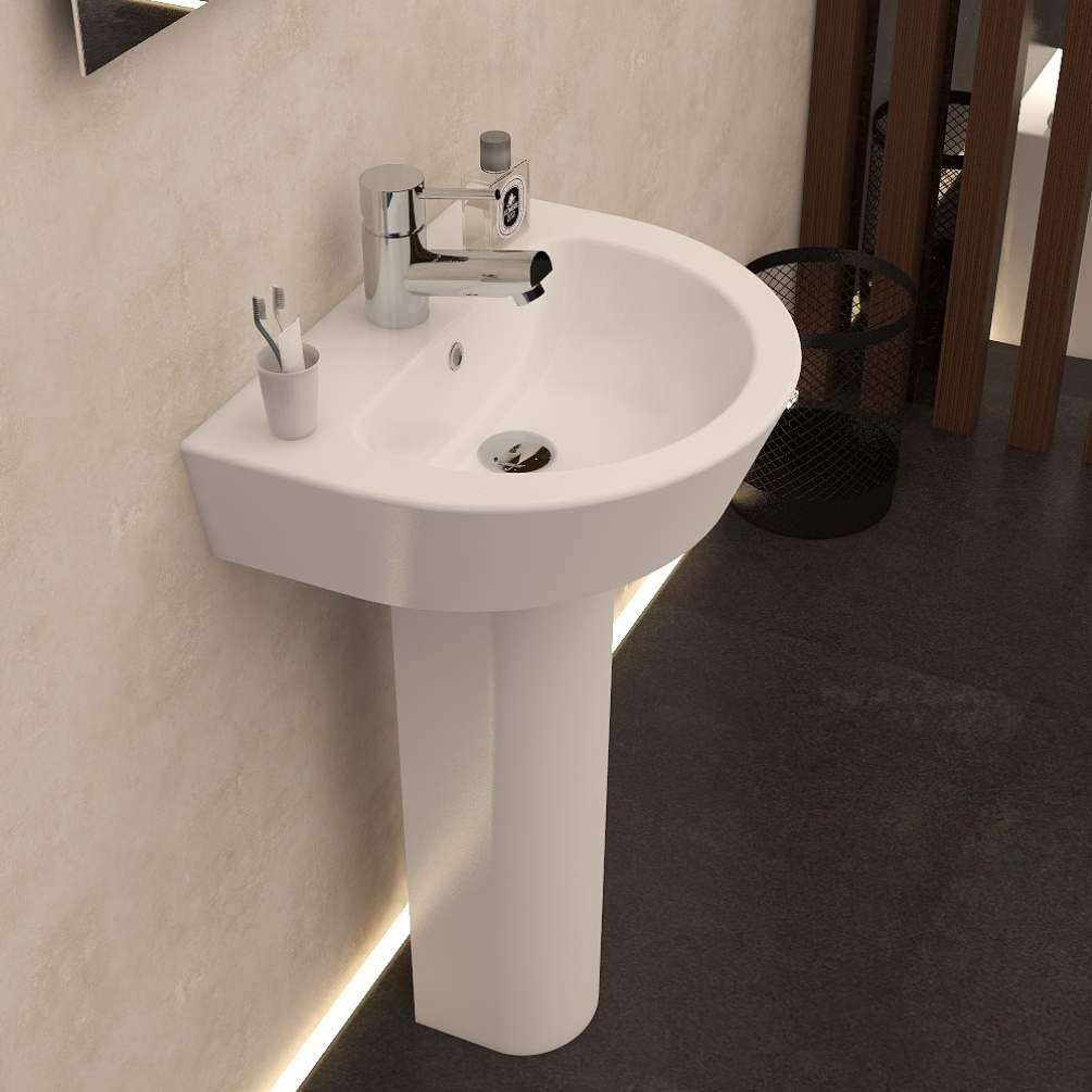 Made from high-quality ceramics for a polished, refined appearance, this small pedestal basin comes with a single centrally placed tap hole, making it easy to fit your chosen mono basin mixer tap (available separately). The pedestal provides added support and provides a neat, practical solution by concealing pipework such as a bottle trap, resulting in a clean, uncluttered look.