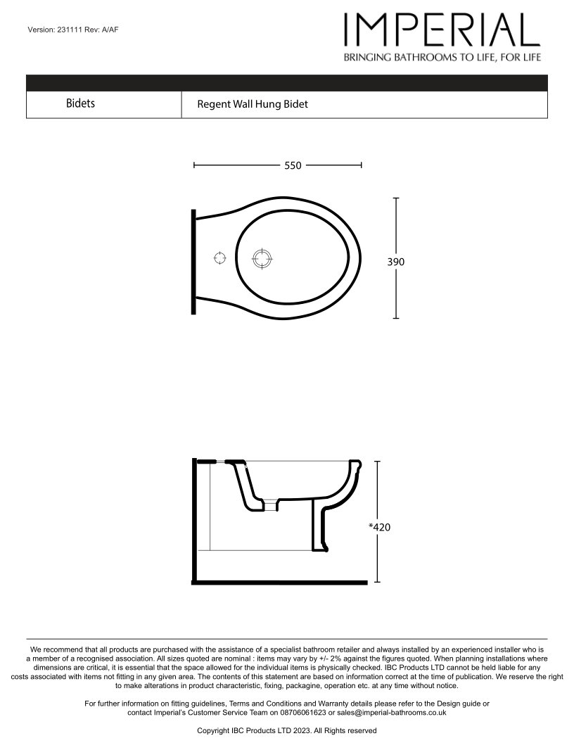 Bring timeless tradition to your new bathroom with the elegant and sophisticated Regent wall hung bidet from Imperial Bathrooms.