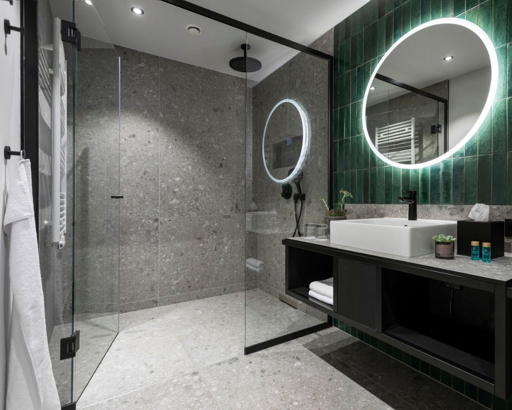 Merlyn’s Eileen Slattery points to eco-friendly elements and wellness features as a key area: “It is likely that consumers will consider investing in wellness-centric and eco-friendly technologies like chromotherapy lighting and water-conserving showers”. She further states that “tech-integrated spaces, with innovations like heated mirrors and sensor-activated taps, [and] general tech-friendly bathrooms that combine form and function will be a top trend.”