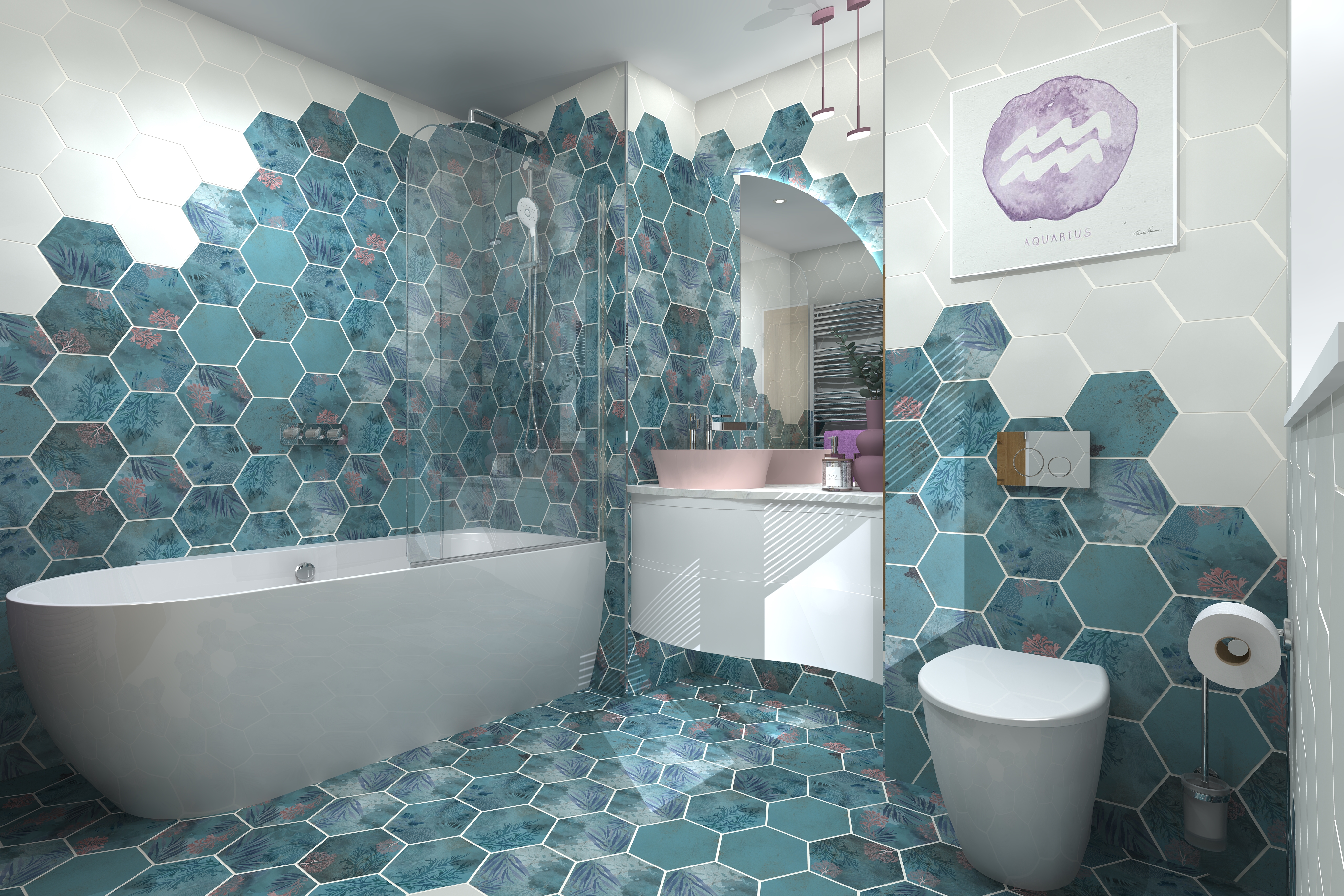 Emily says: “Aquarius is an innovative zodiac sign; you’re always thinking outside the box and love setting trends. Some people won’t understand your style, but that’s okay. It’s not to everyone’s taste, but it is to yours, which makes your bathroom so unique and different from the rest, which is your mantra.”