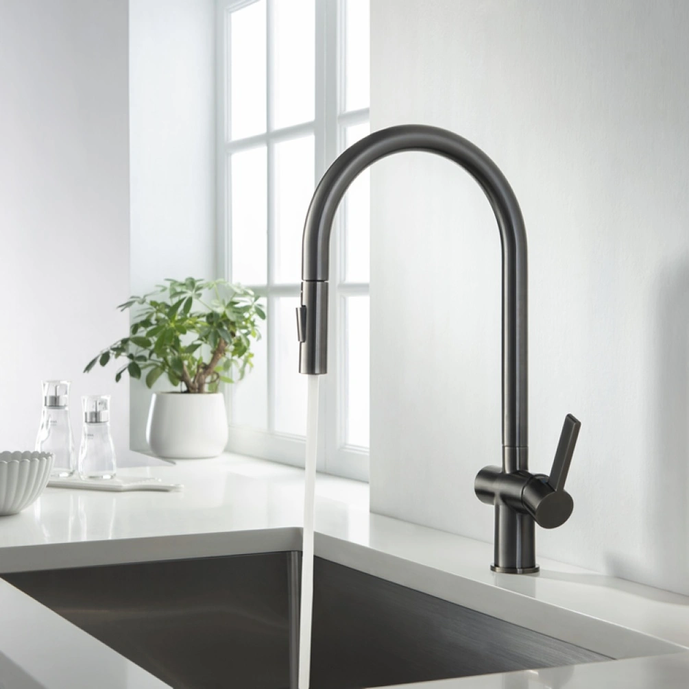 - JTP Vos Brushed Black Single Lever Pull Out Sink Kitchen Mixer for Kitchen