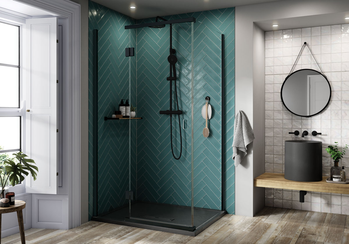 - Kudos Pinnacle 8 Matt Black 800mm Left Hand Hinged Door for Recess